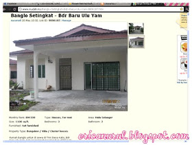 Batang Kali Ulu Yam Banglow Satu Rumah Jual Beli Lelong Sewa