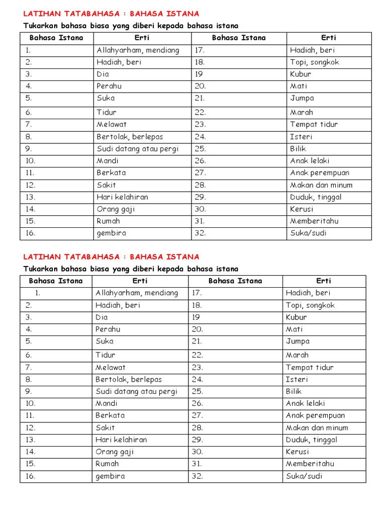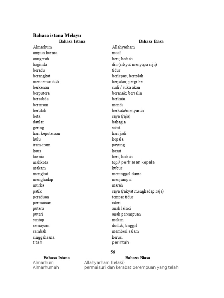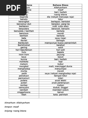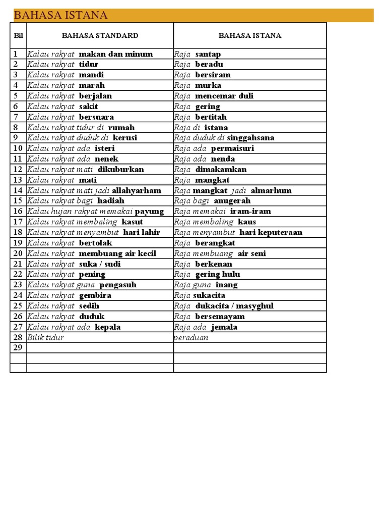 Bahasa Istana Dan Maksudnya