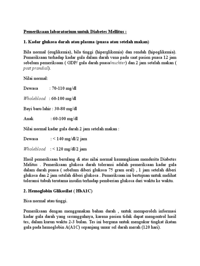 Pemeriksaan Laboratorium Untuk Diabetes Mellitus