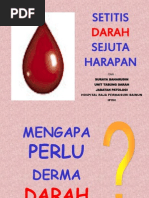 Derma darah sekiranya anda pernah menderma darah walaupun sekali anda adalah merupakan insan yang istimewa dan sumbangan yang telah diberikan tidak ternilai harganya. Jangan percaya mitos kononnya jika seseorang itu derma darah ia akan membuatkan berat badan mereka akan naik dan sebagainya katanya kepada pemberita selepas program derma darah bersempena ulang tahun bahagian perkhidmatan anggota ke 60 di. Ketua pengarah kesihatan datuk dr noor hisham abdullah berkata tiada lagi isu mengenai perkara itu kerana pihaknya sudah mendapat kebenaran daripada kerajaan untuk meluluskan pergerakan keluar penderma darah ke hospital sepanjang. Nik rahim nik wajis.