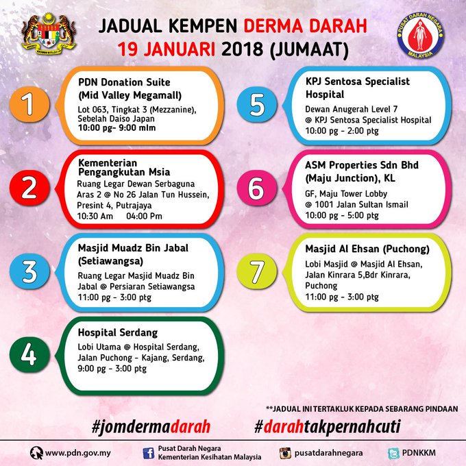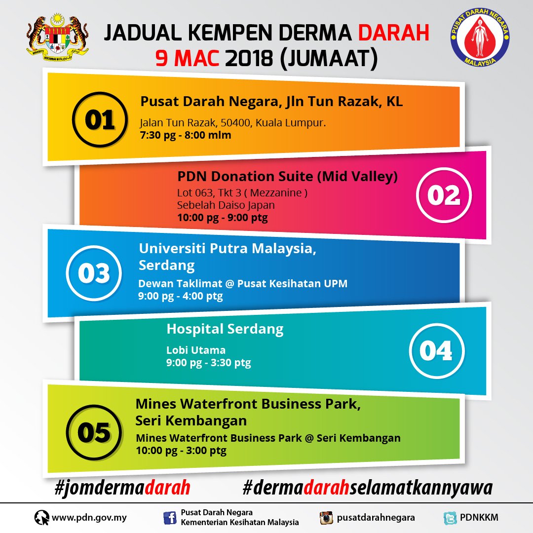 Pusatdarahnegara On Twitter Jadual Kempen Derma Darah 9 Mac 2018