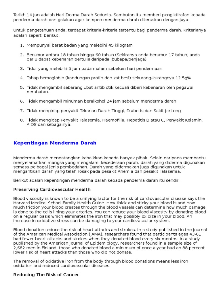 Kebaikkan Dan Kepentingan Menderma Darah Www Sobriyaacob Com