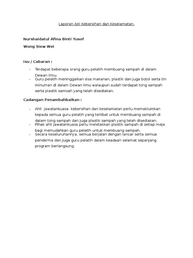 Laporan Ajk Kebersihan Dan Keselamatan Derma Darah