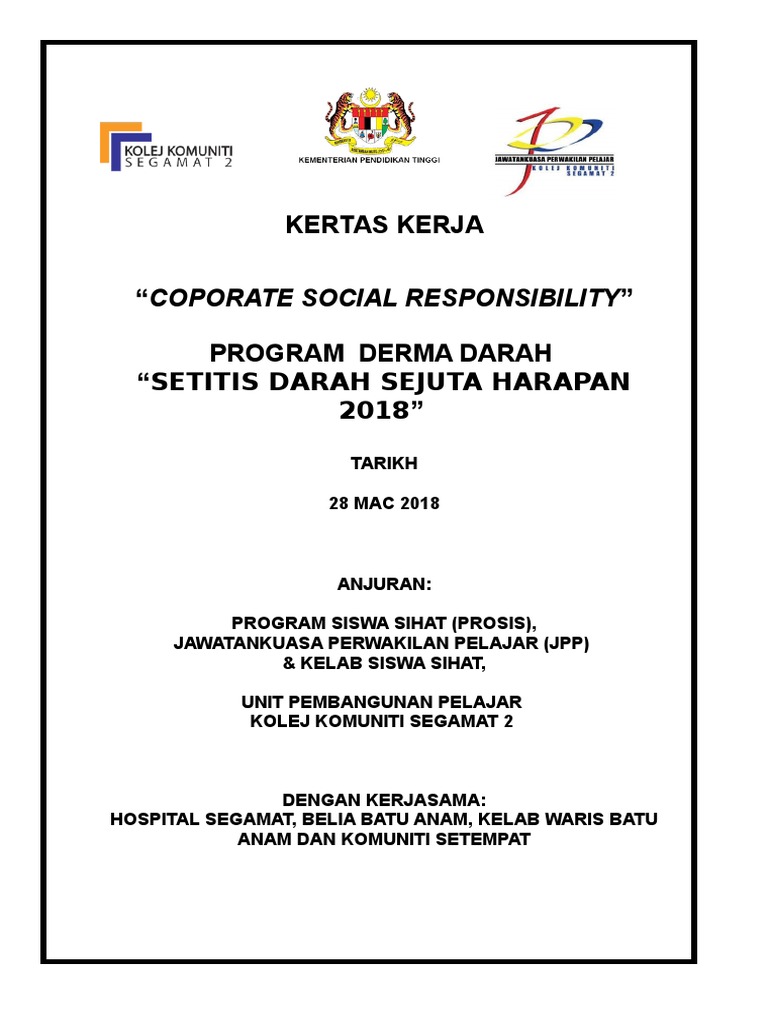 Contoh Kertas Kerja Derma Darah Rasmi J