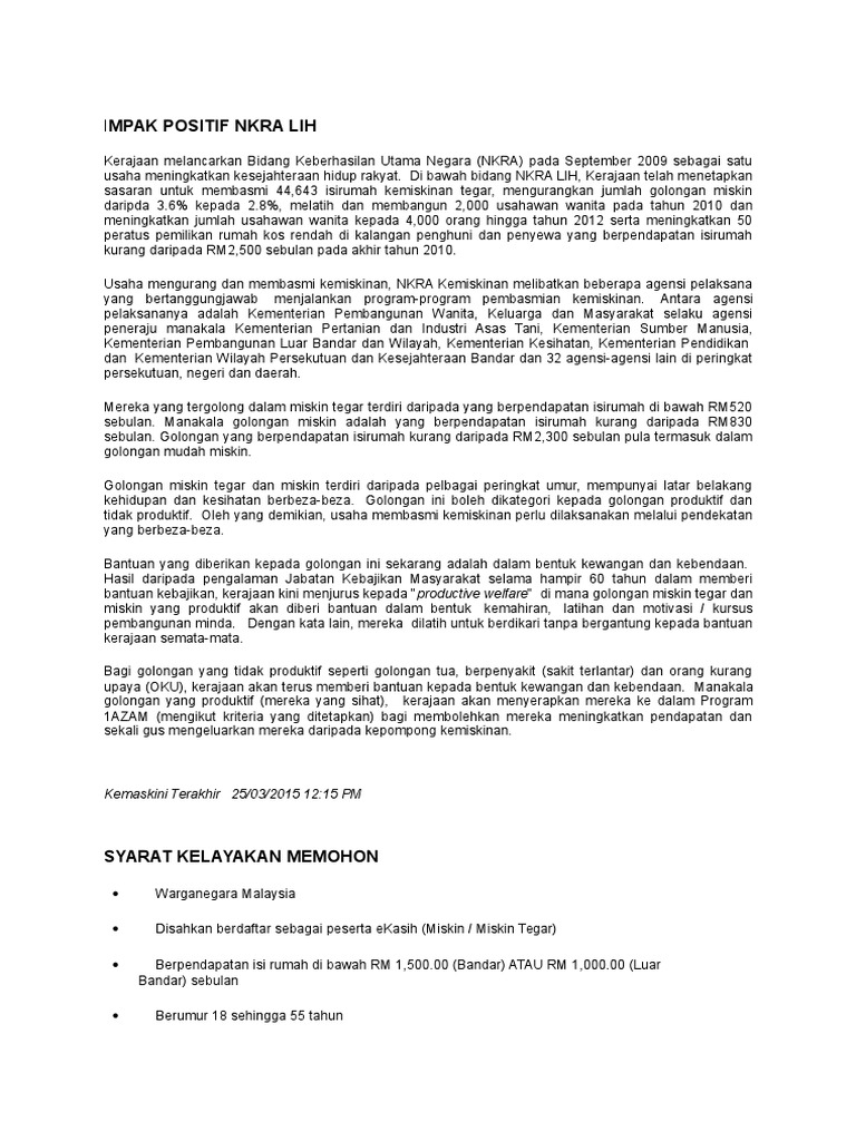 Pengupayaan Pendapatan Isi Rumah Ibu Tunggal Docx Pembangunan